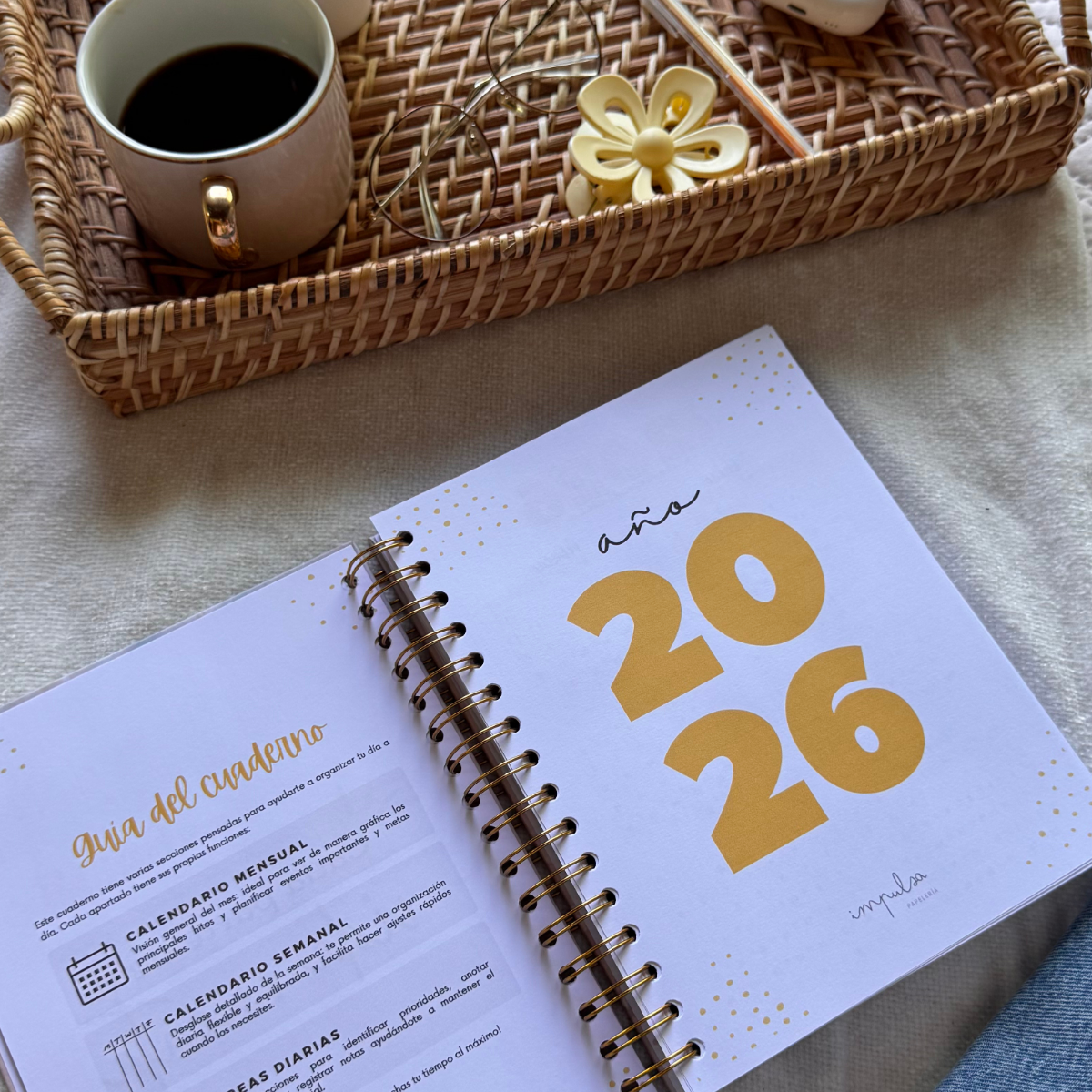 Ideal para quienes buscan una herramienta práctica y funcional con un diseño cálido, neutro y elegante que invita a planificar con calma.