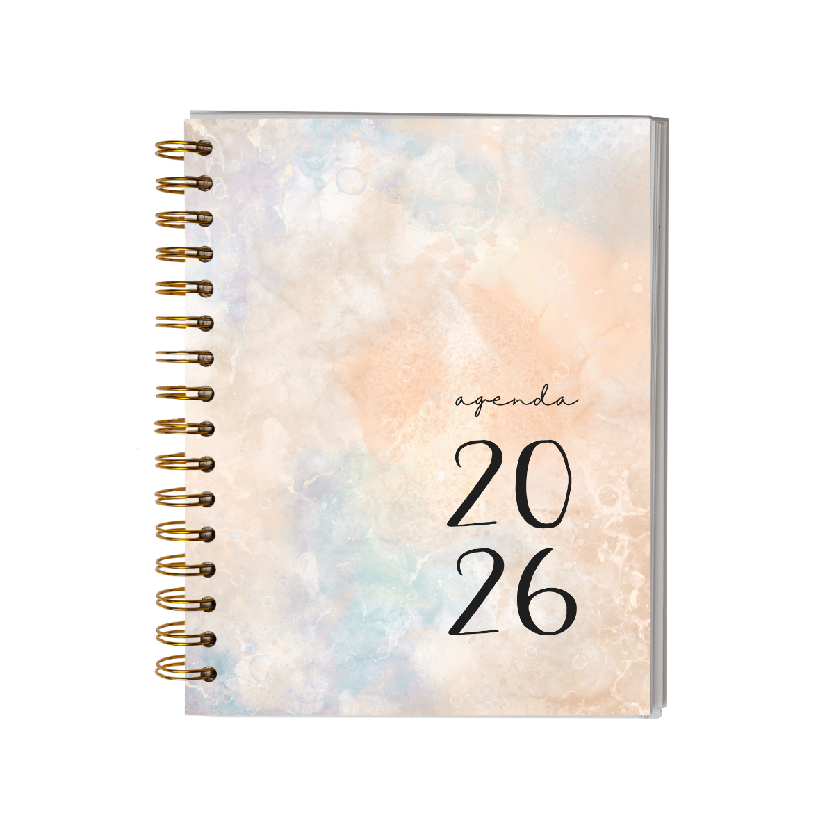Esta agenda ha sido diseñada para acompañarte durante todo el 2026, ayudándote a organizar tus días con equilibrio, intención y bienestar. Su interior combina planificación y reflexión para que cada jornada sea una oportunidad de avanzar con foco y serenidad.