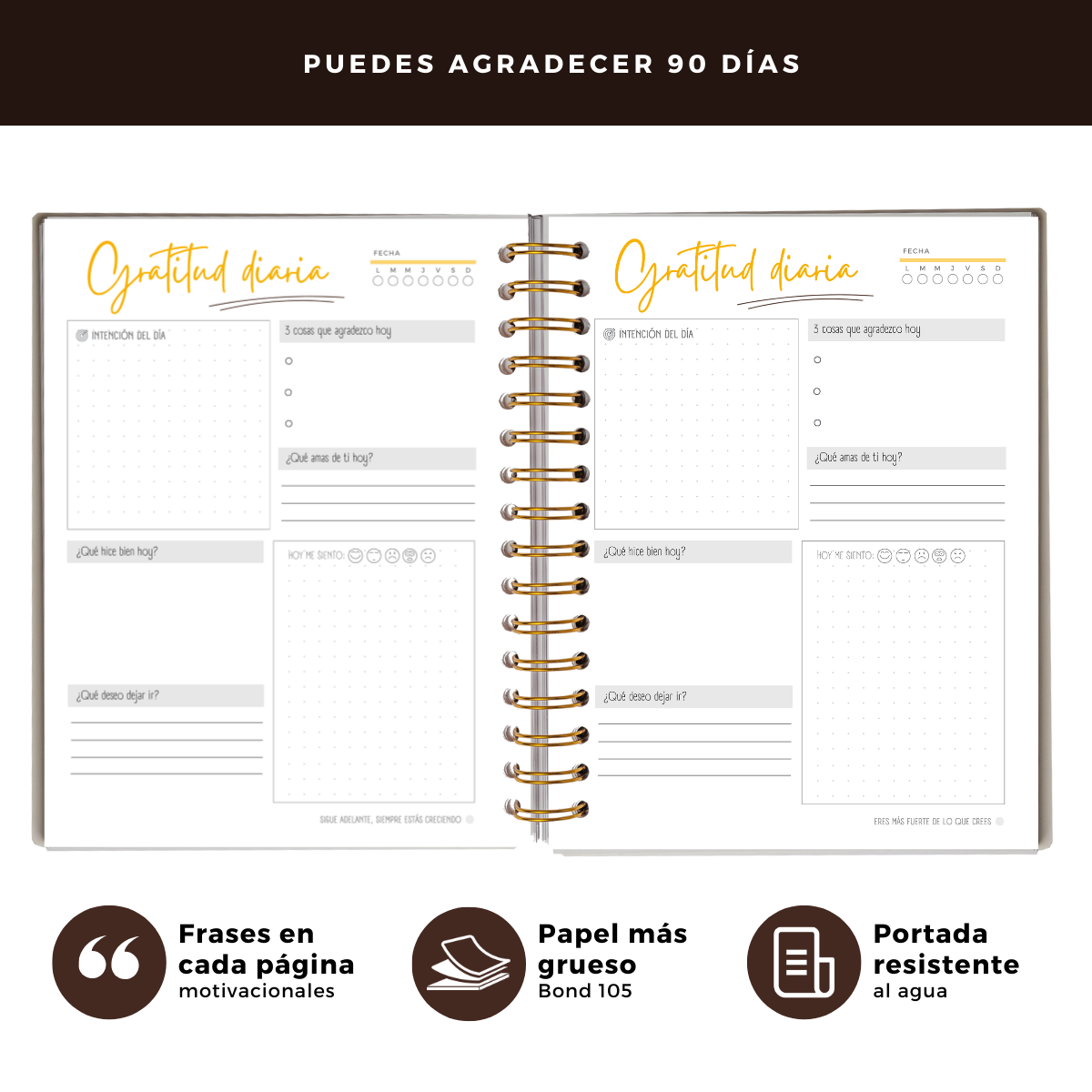 ¿Quieres desarrollar el hábito de la gratitud con un cuaderno de diseño neutro y minimalista? Este Diario de Gratitud de 90 Días está diseñado para cualquier persona que quiera enfocarse en lo positivo sin distracciones visuales.